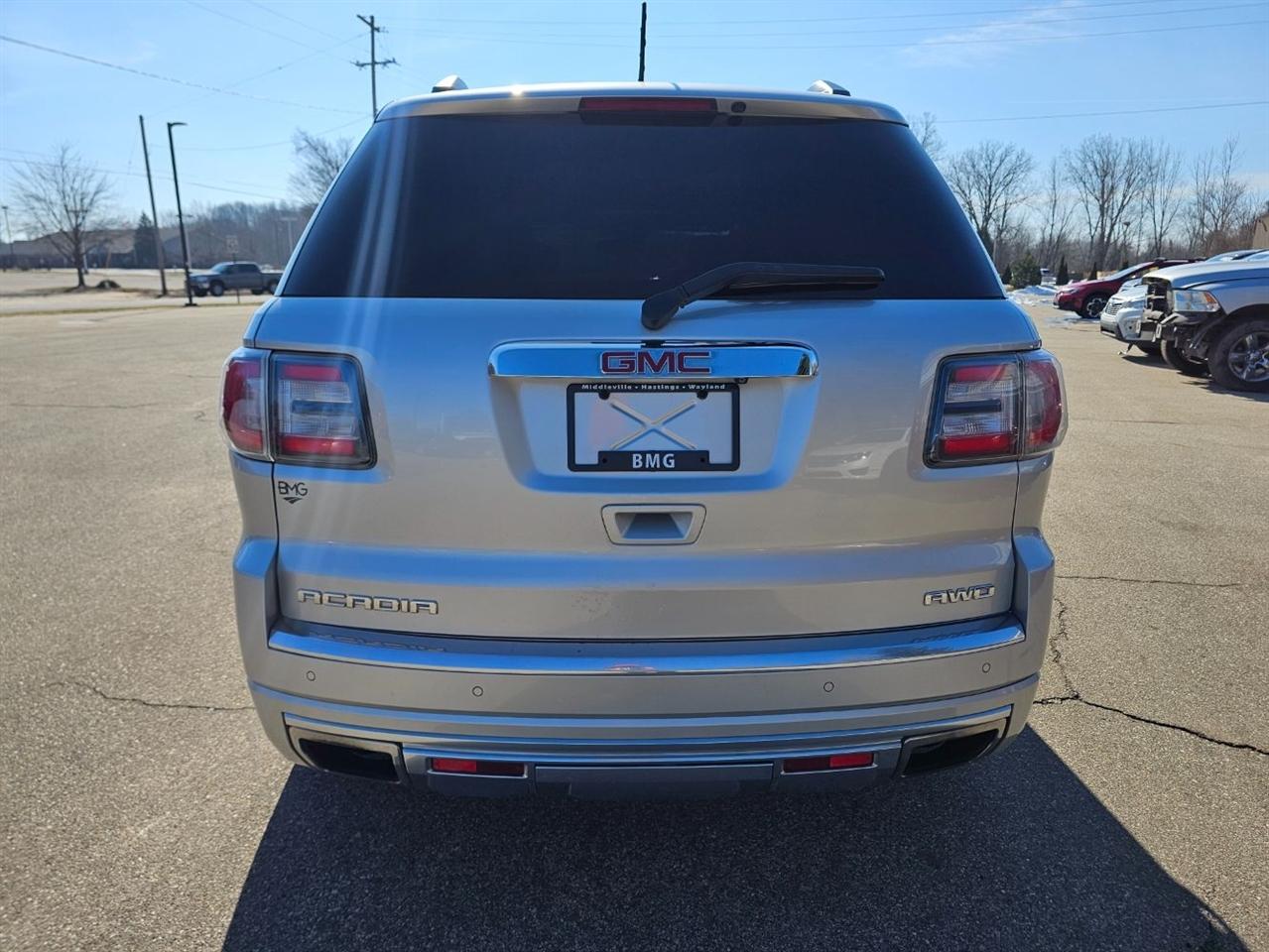 Our Budget Lot consists of vehicles that are sold AS-IS with 100% clarity in what you are purchasing. Located at our Hastings store: 1420 S Hanover St Hastings, MI 49058 (269) 320-6304 2015 GMC Acadia Denali AWD - AS IS 119,135 Miles OPTIONS: 3.6L V6 6 - Speed Automatic Transmission AWD Black Leather Interior Heated / Cooled F Seats Heated Steering Wheel Dual Climate Controls AM/FM/CD Radio DVD Navigation Bluetooth Backup Camera Cruise Control Sunroof Third Row Seating Remote Start Hitch Receiver Alloy Wheels New Front Brake Pads and Rotors Fresh Oil Change The goal of the Budget Lot is to provide affordable transportation to those who don't want to roll the dice in a private sale for similar prices. We recommend an inspection by a personal mechanic before each sale for your peace of mind. This inventory is sourced from local trade-ins between our three locations or purchased at auction. Call: (269) 320-6304 For more Information on this Vehicle! At Broadmoor Motors, every customer is important. Just google us!! Stock #28996HBA
