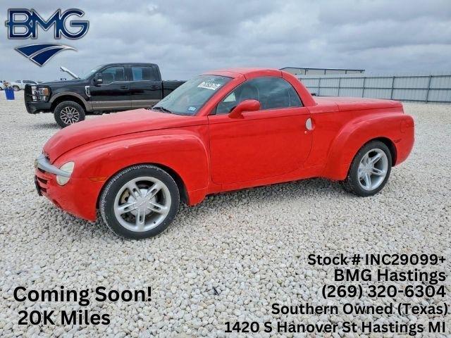 This vehicle is part of BMG's incoming auction inventory and is currently undergoing reconditioning and/or repairs. It is not yet available for sale, but it will be offered soon once all work is completed and it meets our quality standards. For more information or an estimated repair completion timeframe, please contact BMG Hastings directly. Please call (269) 320-6304 or message for more information! 2004 Chevrolet SSR LS RWD 20,017 Miles Texas Owned! We stand behind our vehicles, check out our reviews! Located at: 1420 S Hanover St, Hastings MI 49058